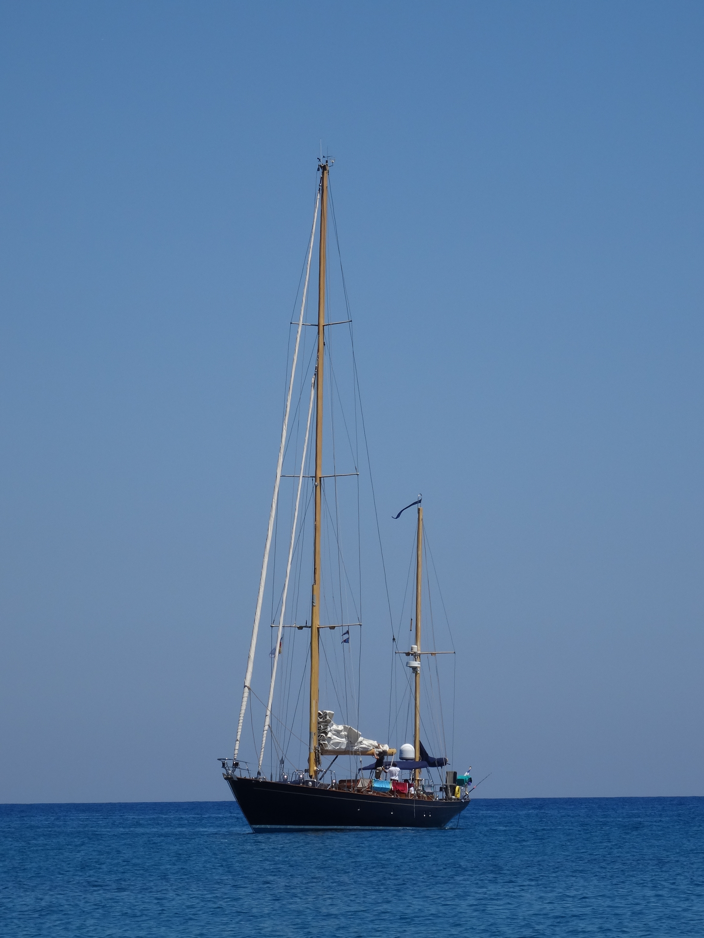Så har vinden lugnat ner sig, det är bara en svag fläkt kvar. I lägenheten står det stilla så fläkten är igång. Ganska tröttsamt att lyssna på. Jag har faktiskt varit på stranden i eftermiddag. Parkerade mig under parasoll med bok och njöt av svalkande vind från havet.