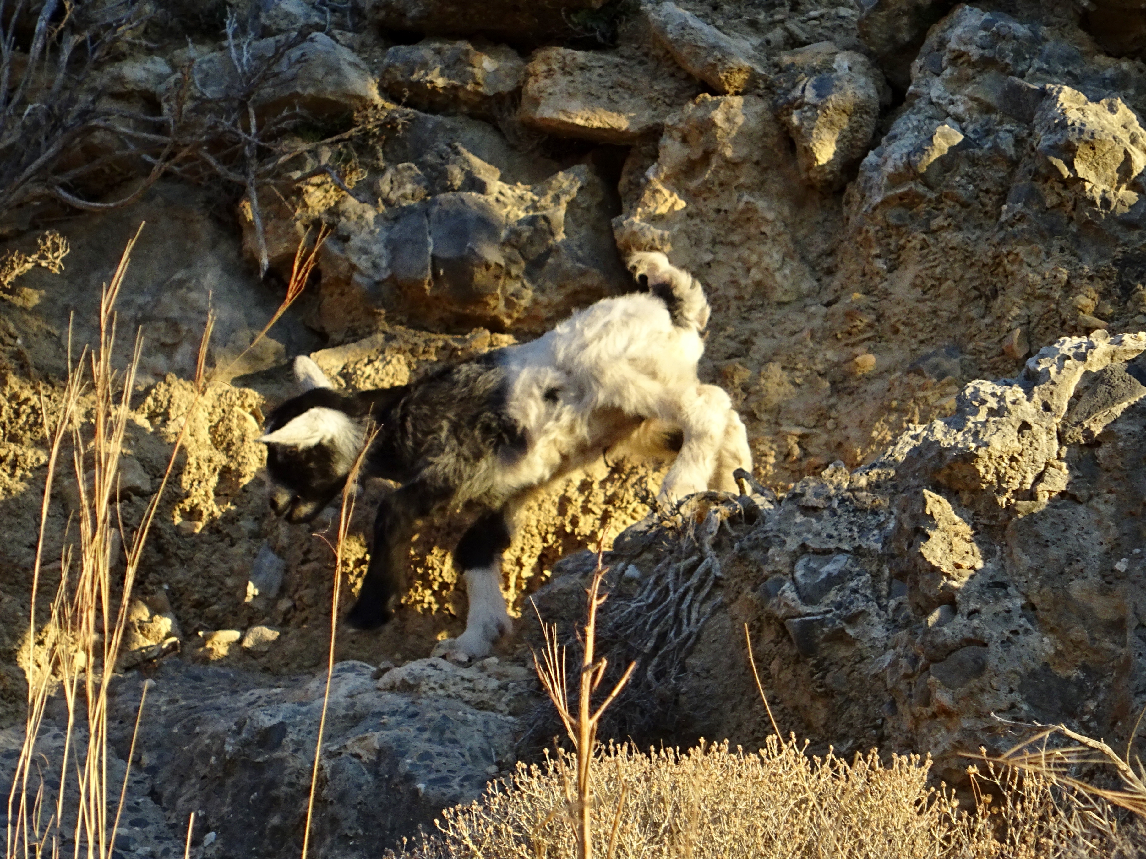 Många små charmiga killingar. De var så ”nya” att de antagligen inte hunnit knyta an riktigt till sina väna mödrar. En killing pep något alldeles väldigt när den kommit bort från flocken och en annan var nästan hysterisk när den inte hittade ut ur en liten inhägnad (modern hade redan gett sig iväg – jag såg henne). Jag lyckades få killingen att hitta utgången, sedan stod den stilla och tittade på mig ungefär som om ”jaha, och var är nu min mamma?”. Men då sa jag högt och tydligt att något får du sköta själv, jag kan inte ordna allt. Så gick jag.