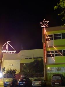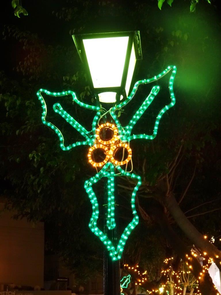 Vi traskar genom sta’n och beundrar olika ljusdekorationer. Föreställ dig att tre slingor blinkar och pulserar, men i otakt….så ser det ut i verkligheten!