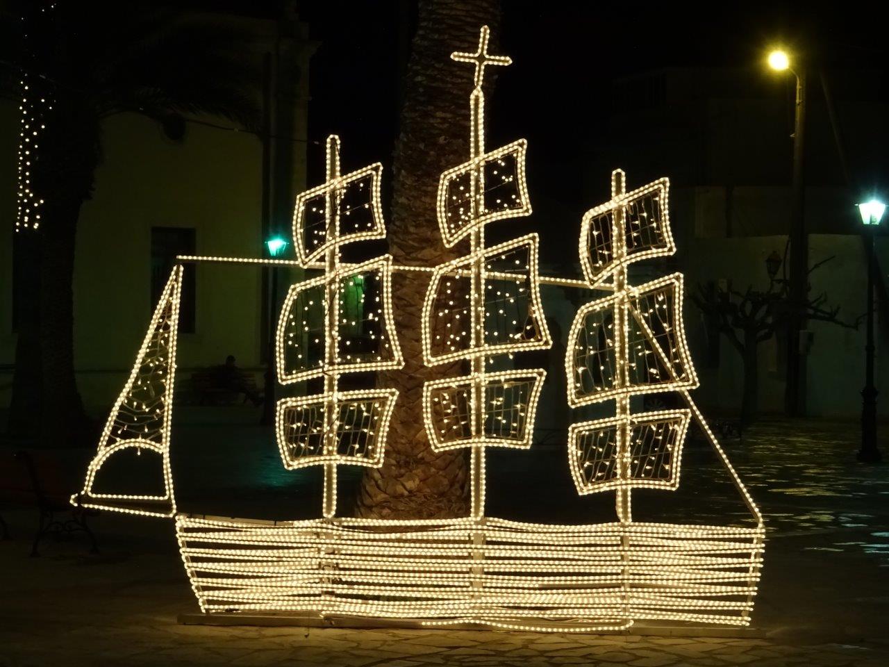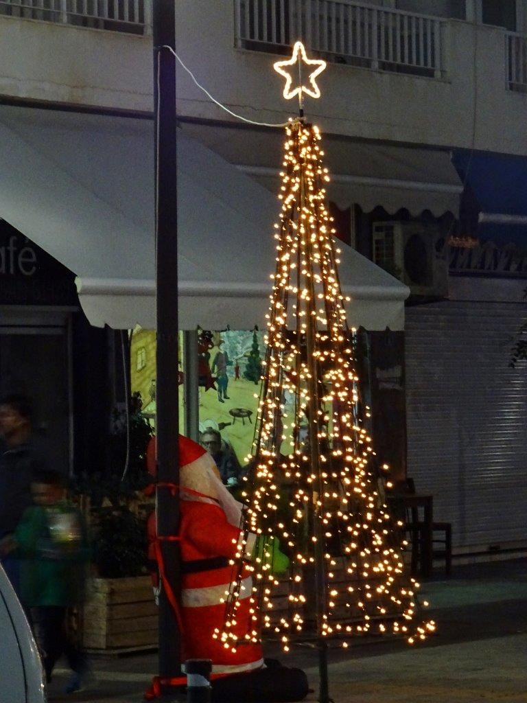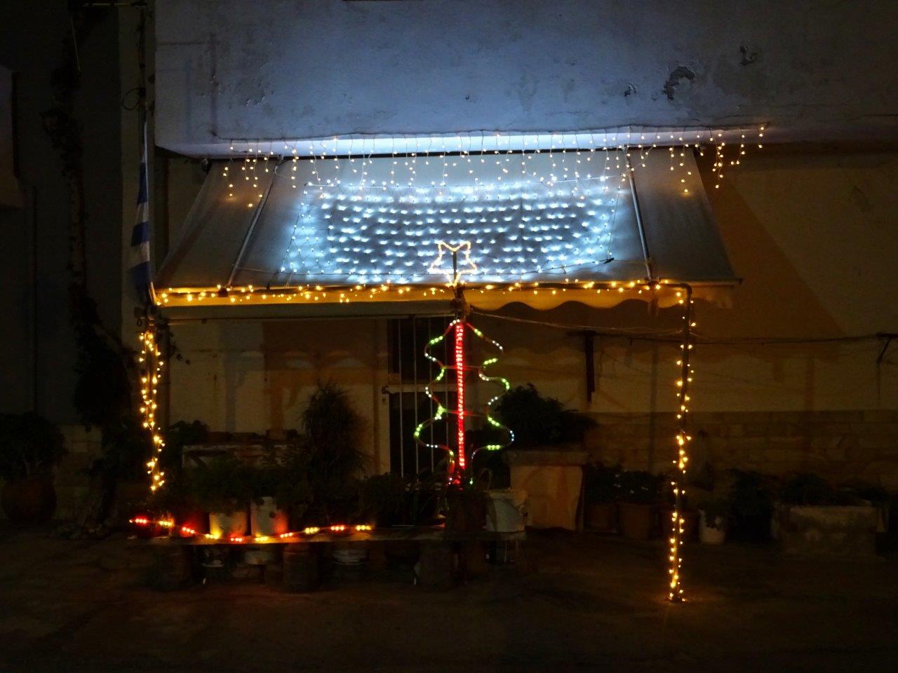 Vid moskén hittar vi båten som är en viktig juldekoration och du undrar kanske varför. Det anspelar på att Grekland är en nation med många öar och mycket sjöfart och kvinnor och barn stod och tittade efter männen som kom hem till högtiderna. Men kanske viktigast numera är att den grekiske tomten Vasilis kommer vid nyår med båt. Inga slädar och så’nt trams här inte!