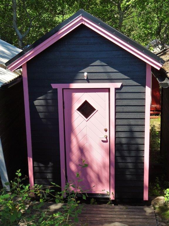 Så var det dags att lämna Österlen för några dagar i Ystad (nej, Ystad ligger inte på Österlen). Vi tillbringade en eftermiddag på stranden nedanför Saltsjöbaden och jag gick då en tur i sandskogen. Där finns många fina hus, roliga hus och oaser att titta på. Bäst tid för hustittande är dock vår och höst. Nu var allt så utslaget och tätt. Strosa gärna omkring bland badhytterna – finns många pärlor.