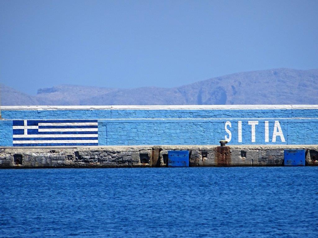 Svettig sökte jag svalka ute på pirerna och då upptäckte jag att jag haft lite fel om hur Sitia ser ut, hur sta’n brer ut sig i sin lilla bukt. Om man står med näsan mot land så har man gamla sta’n på höger sida som klättrar uppför den branta sluttningen. Rakt fram ser man nästan ingenting av sta’n för där är det platt så nyare bebyggelse och olika stora varuhus sträcker sig inåt land. Och till vänster ligger den långa sandstranden och några hotell. Sta’n tippar alltså lite åt ena sidan!