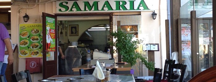 Vi åt på taverna Samaria (på strandpromenaden) som jag kan rekommendera om du vill äta mat i sta’n som smakar som maten gör i byarna. Rustik, mustig mat! Gå ut i köket och se vad som finns i grytorna!