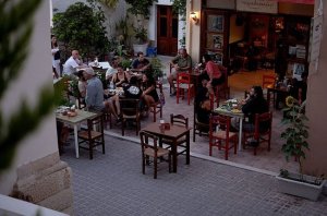 Jag hade inte hittat några öppna tavernor på min biltur så det fick bli en sen liten matbit i Rethymno tillsammans med en stärkande kopp kaffe. Jag hittade ett litet ställe som heter To Havesiliki (på en hörna i närheten av Metropolitan-kyrkan, på gatan Mousourou). God mat, gott kaffe. Lugn omgivning och varm stämning. Kändes nästan lite som ett studenthak. Såg senare på nätet att på kvällarna är det musik, ofta traditionell musik.