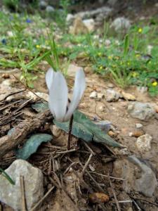 Där ute finns en helt fantastiskt underbar natur som bjuder på olika färger, former, växtsätt, storlekar, dofter, ljud. Att vandra där idag var som att bada i ett grönt hav! Ingen konstnär eller målare kan ta fram så många gröna nyanser. Och de ändras beroende på hur ljuset faller och vindens framfart. Kanin skuttade, ödlor prasslade, vatten forsade, fåglar kvittrade och vackra fjärilar flög omkring. Nytt liv bryter fram i vårskirt grönt eller blodrött. Molnen hade formationslek uppe i skyn. Hundskall i fjärran tillsammans med getters bräkande, en vacker häst betade girigt i en olivlund. Plötsligen slog vädret om, jag kände en regndroppe, men det slutade innan det börjat. Som om vädrets makter ångrade sig och tog tillbaka sin lilla skur (kanske släppte den nå’n annanstans, vem vet).