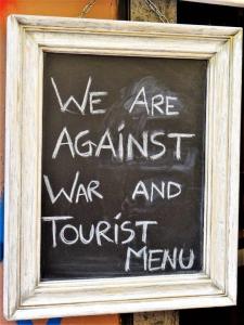 Trastevere – en besvikelse. Visst, det är charmigt med gränderna, blommorna som klättrar på husen, ljuvliga färger, prång och gångar. Men också väldigt slitet och det skulle jag kanske kunna svälja. Stadsdelen är otroligt nerklottrad och det förtar stämningen och charmen för mig. De delar som inte ligger närmast turistattraktioner är väldigt nerslitna och här och där skräpiga.