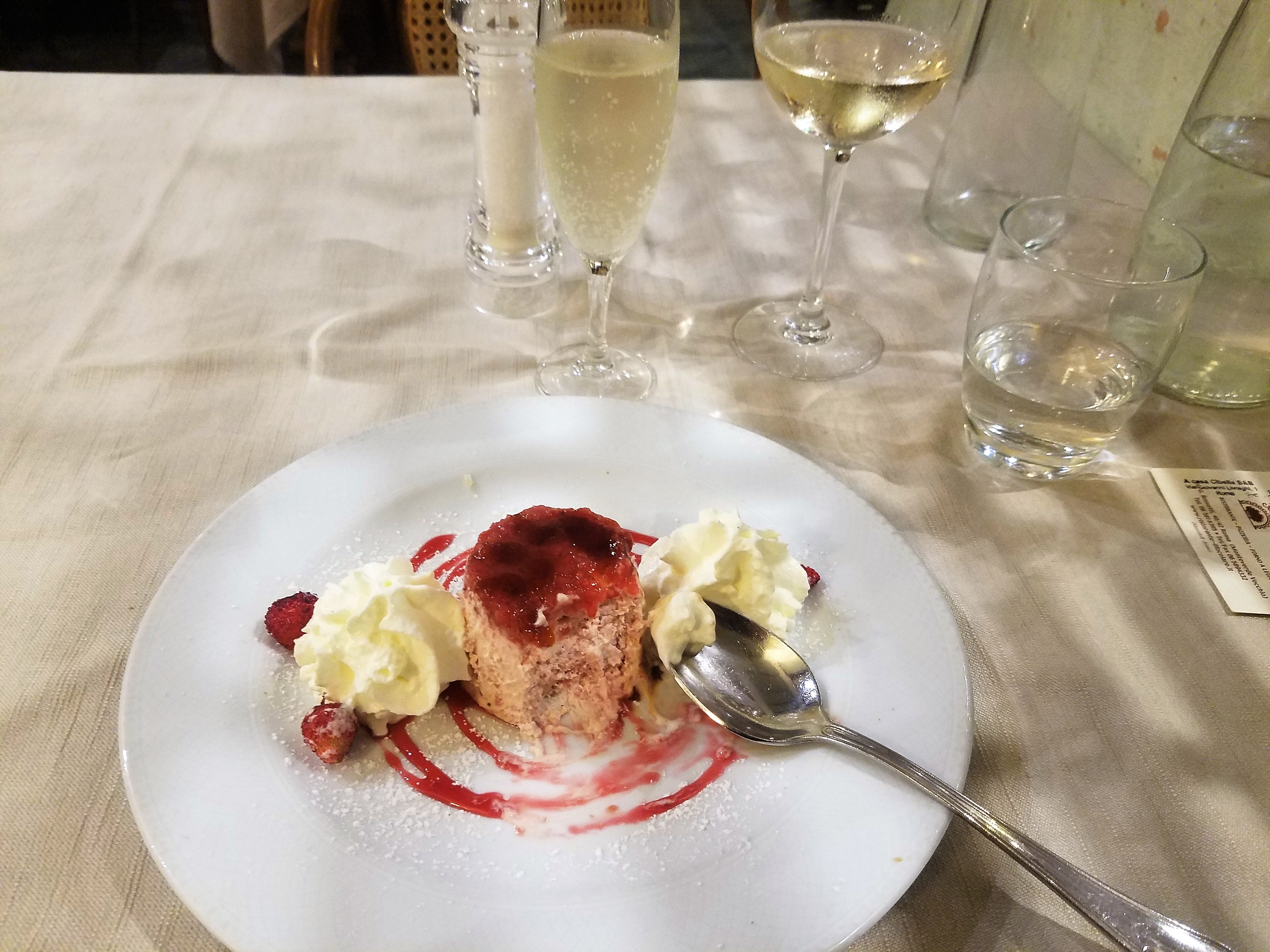 Middag: Il Focolare, Via G. Rosetti 40/42, Monteverdi Vecchio – födelsedagsmiddag så det blev lax, sedan himmelsk biff och jordgubbsfondant som avslutning. Varm, härlig atmosfär och jag var enda turisten. När sällskapet vid bordet bredvid lämnade hälsade de på mig – trodde kanske att jag var nyinflyttad i kvarteret!