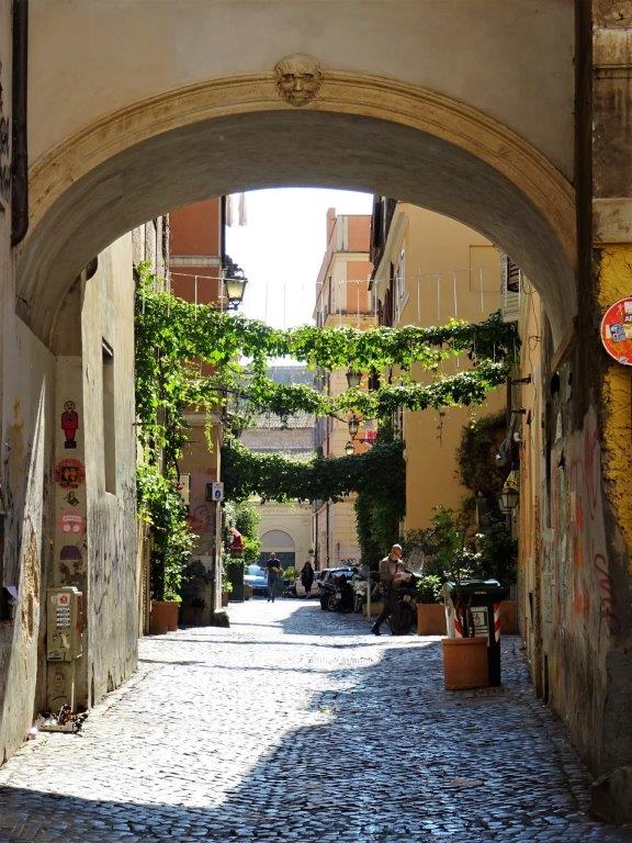 Trastevere – en besvikelse. Visst, det är charmigt med gränderna, blommorna som klättrar på husen, ljuvliga färger, prång och gångar. Men också väldigt slitet och det skulle jag kanske kunna svälja. Stadsdelen är otroligt nerklottrad och det förtar stämningen och charmen för mig. De delar som inte ligger närmast turistattraktioner är väldigt nerslitna och här och där skräpiga.