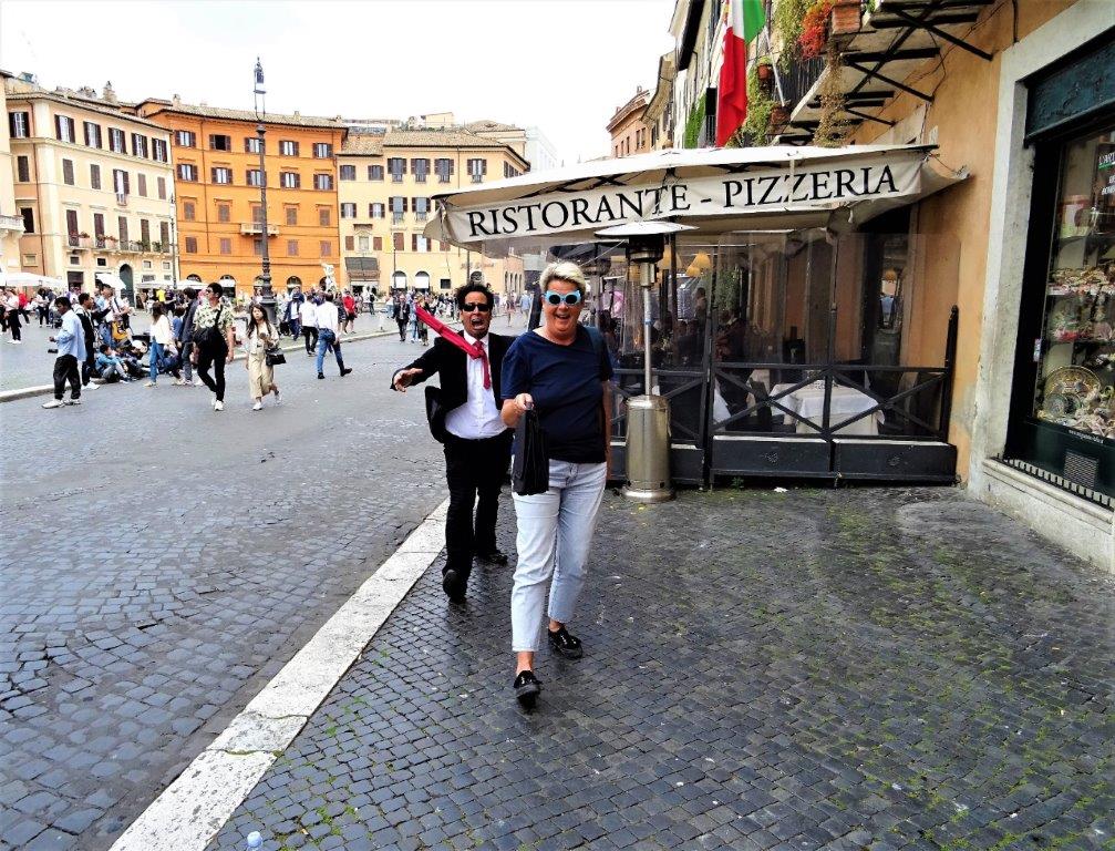På Piazza Navona blev jag kidnappad av en ”levande staty”. Jag förstod inte ett dyft, men skrattade gott när jag såg fotot som han arrangerat. Smart och en kul grej.
