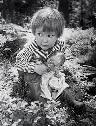 Här beundrade jag ljuset som kommer snett bakifrån. Barnet och dockan blir tydliga och får nästan en gloria runt sig, de blir en enhet. Ingen tvekan om vilka som är huvudpersonerna i detta fotot! Och det händer nå’t därborta….vad? Jag blir nyfiken.
