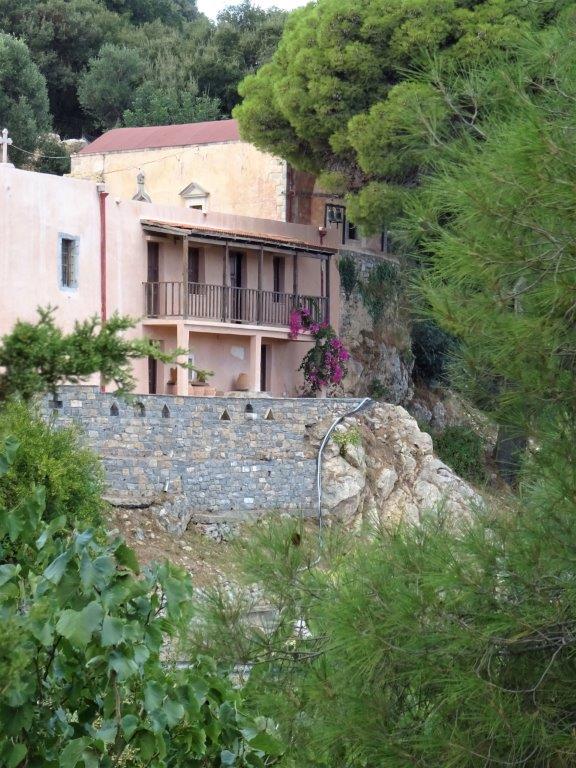 Kremasta-klostret mötte oss med storstädning, reparations- och trädgårdsarbete. Något måste vara på gång, tänkte vi, och det var det! Klostret fullständiga namn på engelska är Monastery of the Archangels Michael and Gabriel in Kremasti och på fredag har Michalis (ärkeängeln Mikael) namnsdag. Stor dag! Några nunnor tog en paus och pratade en stund med oss, en frågade om vi ville se ”hemliga skolan” och det ville vi gärna. Ett rum gömt för fiender där man inte bara kunde ha skola utan kanske ännu viktigare: smida motståndsplaner. Rummet kunde nås via en ingång från taket och en hemlig tunnel.