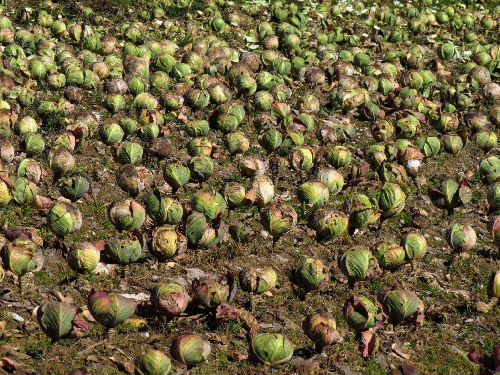 Helt dött var det inte. Några var ute och beskar fruktträd och det var gott om gröna och rödsvarta kålhuv’en – en gröda som tydligen klarar snö och frost. Stod lådor med skördad kål lite varstans.