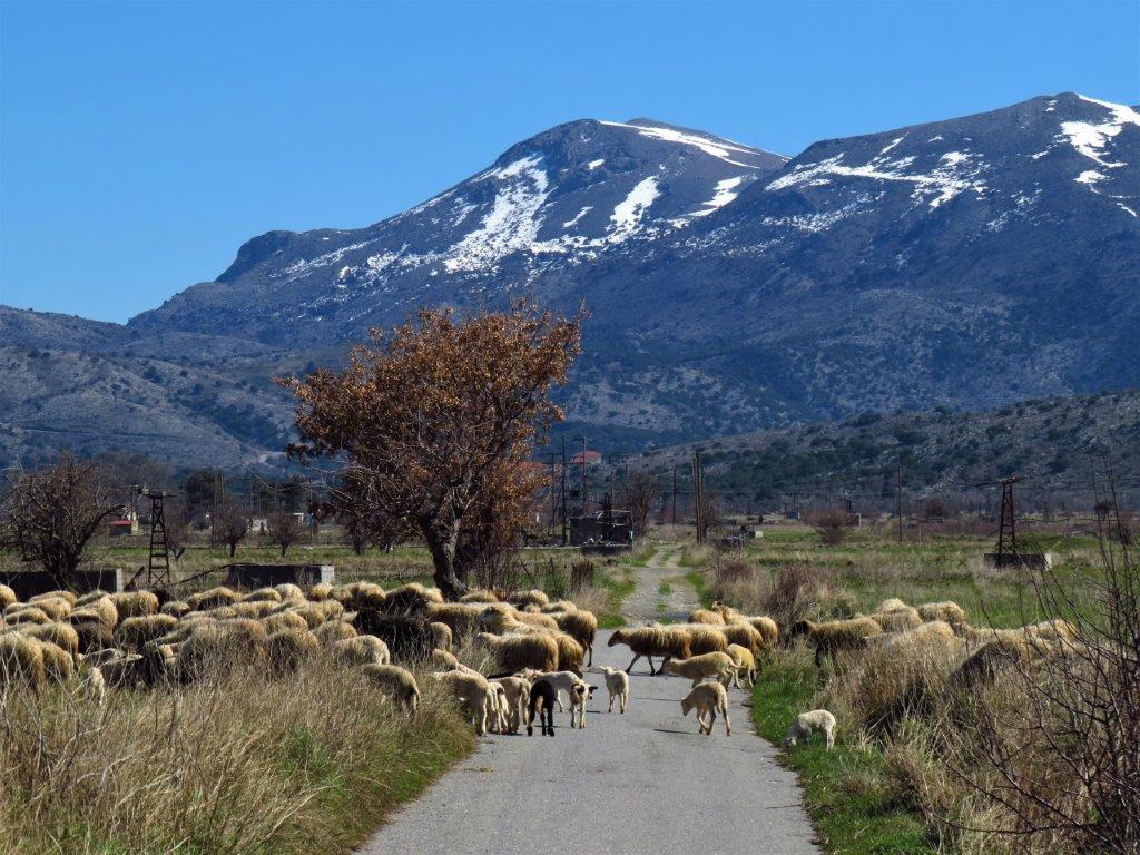 Uppe på platån möttes vi av de majestätiska, snöklädda Dikti-bergen: