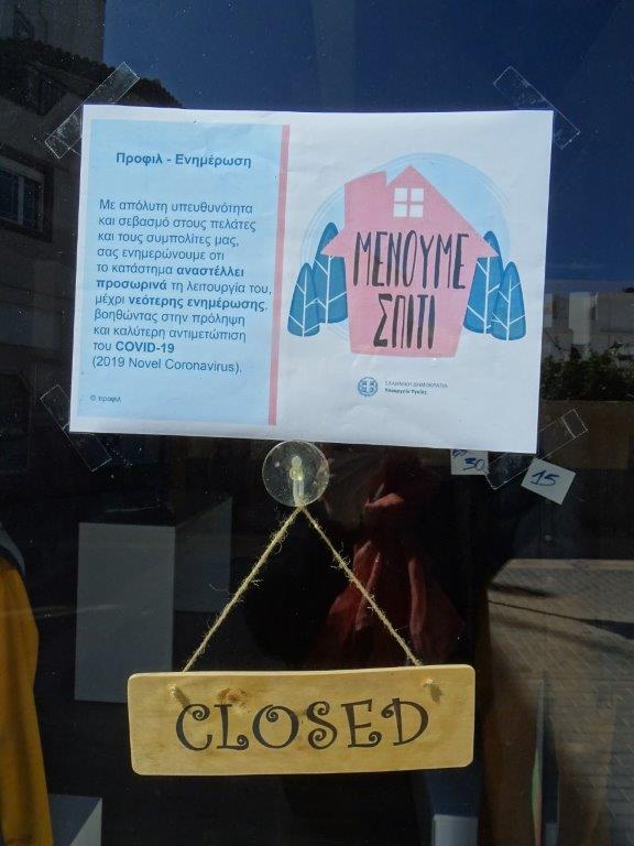 De som har öppet är super markets, mini markets, grönsakshandlare, fiskbutik, slaktare, take away/home delivery av mat och kaffe, bagerier, apotek och telekombutiker som Germanos och Vodafone. De sistnämnda har öppet några timmar. Kommunikation är viktigt.
