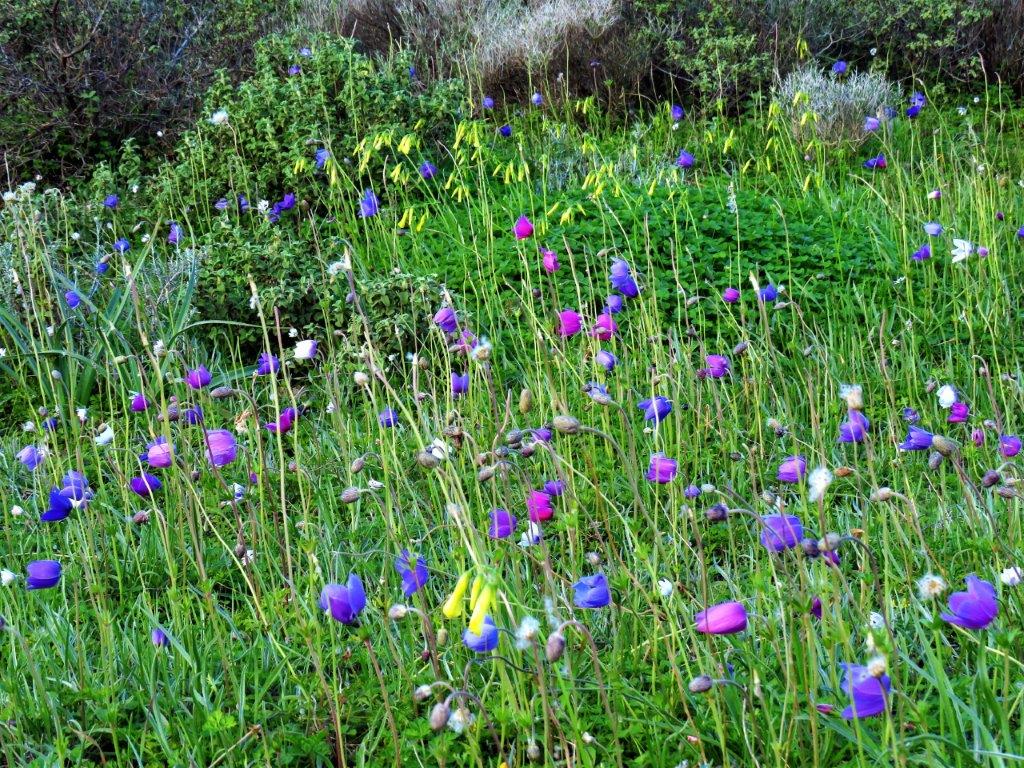 Vyer ut över havet i Mirabello-bukten som är på väg att få sin vackraste färg. I mars, i skiftet mellan vinter och vår, är havet som vackrast under hela året. Plötsligen vattenporl! Eftersom det regnat så mycket rann det vatten i en liten bäck. Trevligt och rofyllt ljud. Så över krönet och utsikten blev istället Libyska havet alldeles fullt med solglitter. Det såg ut som om ön Chrissi badade i sol och inte i vatten!