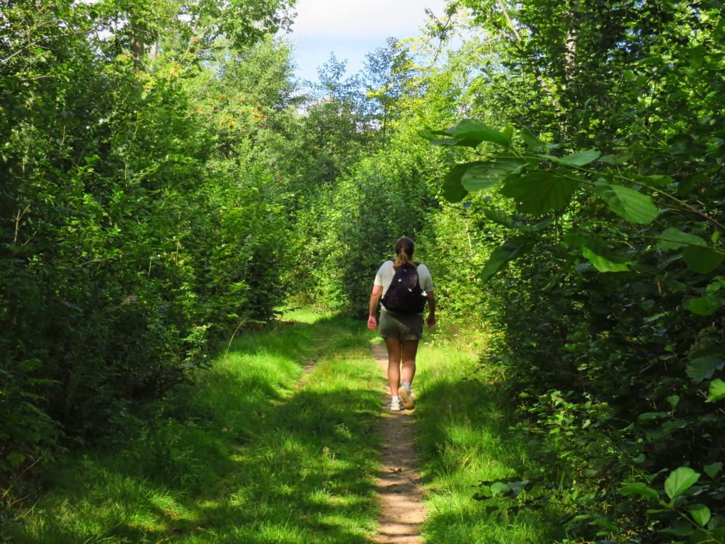 Systerdotter Frida och jag hade samma tanke – vandra Finjasjöleden. Hon hade inte vandrat där tidigare, jag har gjort det många gånger. Vi parkerade vid Björkviken och startade längs med sjökanten. Snart leddes vi in i skog, kom ut till sjökanten igen, ut på öppet fält, in i skog. Så fortsatte det och du förstår att leden är väldigt varierad. Jag insåg att förutom vatten saknar jag att vandra i lövskog. Vi passerade också ”Europas regnskog” där vi gick på Sveriges längsta alsumpspång.