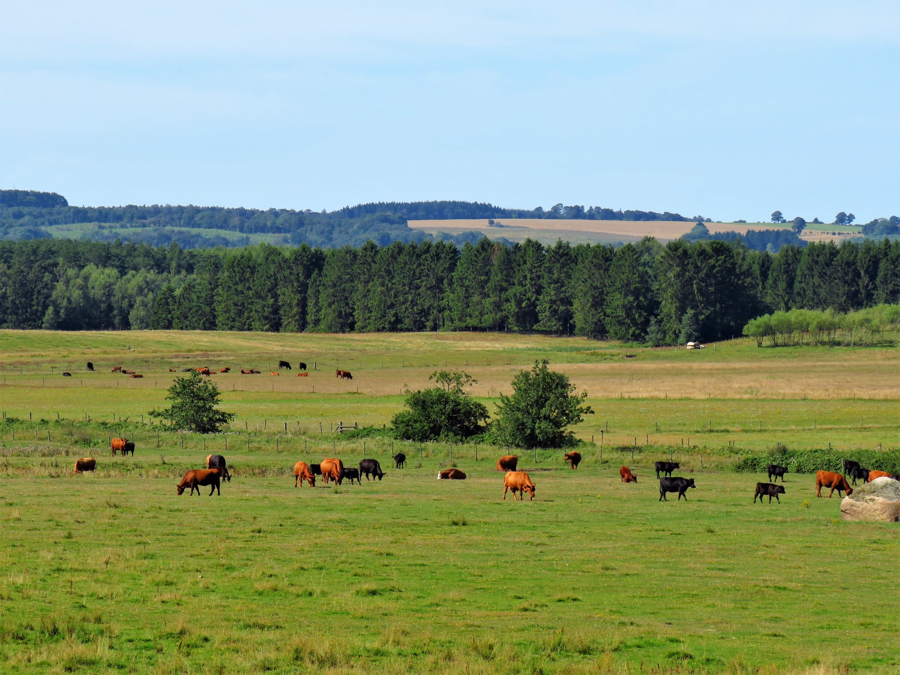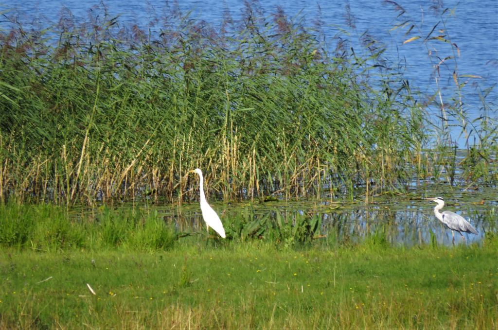 Vi var nära Sövdeborgssjön och rörde oss i kanten av Sövdesjön – det gjorde oss lite vilsna. I kanten av någon av de två sjöarna fick vi se ett skådespel: en ägretthäger landade i sjökanten, in träder en hopkrupen gråhäger och gör utfall. Budskapet var tydligt, ägretthägern lyfte och gav sig av. Förutom detta såg vi en butter hare, en mycket död kopparödla, en pigg liten snok, hörde och såg ett litet träd prassla som vi inte tog reda på vad det var (ville inte störa, kan ha varit ett litet vildsvin). Trollsländor, fjärilar och andra flygfän. Kom ut i öppet landskap och där gick hästar och kor. Där fick jag en deja vu – där hade jag vandrat för ett antal år sedan! Jag måste försöka minnas, bilden var så tydlig och klar…