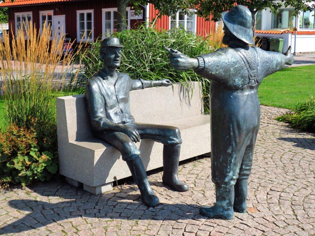 På sträckan passeras också små byar och fiskelägen. Det finns några statyer (”Storfiskaren” i Viken nedan är ett exempel), gamla skyttevärn som ingick i Skånelinjen under andra världskriget, naturreservat och massor med vresrosor som det kämpas mot. Jag kände att jag höll på att få sendrag i nacken eftersom jag njöt av att gå och titta ut över sundet. Fartyg och båtar kommer och går vilket ger liv åt havet. Hos oss i sydost på Kreta ser vi sällan båtar och fartyg. Förra sommaren låg det militärskepp varje dag utanför sydöstra kusten och jag tänker att jag föredrar trafik med containerfartyg och en och annan segelbåt.