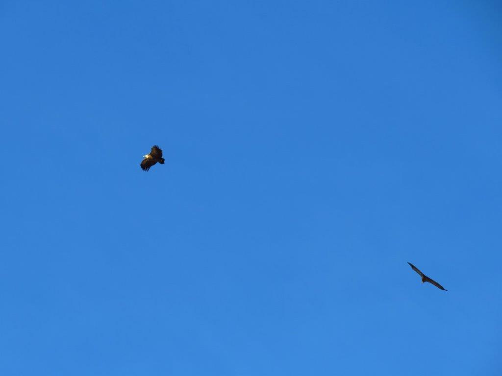 Efter en stund hade jag två gåsgamar som seglade över mig. Det är bara att stanna upp och njuta. De rörde inte en fjäder på sina vingar utan segelflög så där skickligt som bara de kan. Och absolut tyst. Inte ett ljud, läte eller svisch i luften. Kändes som om de gett sig ut på spaning från klipporna bredvid för att kontrollera den där tvåbenta varelsen som inte drev får eller getter och inte plockade oliver. Vem är det och vad vill den där människan…