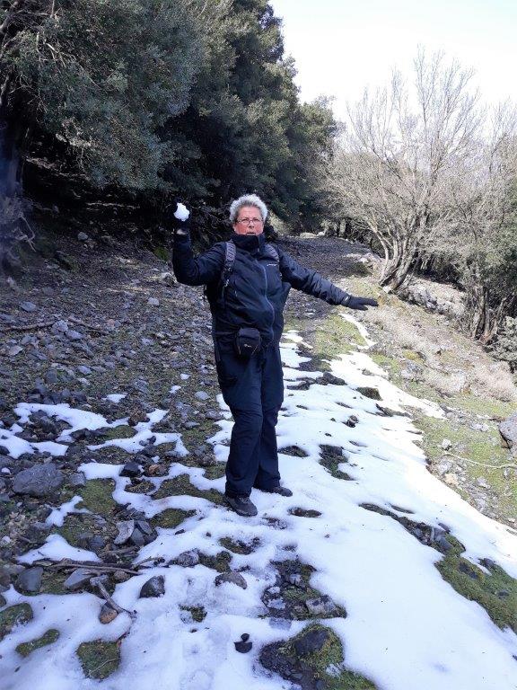 Kurs och fart genom Vrisses, ut på gamla vägsträckan via Neo Chorio. På den vägen fick vi en underbar vy av höga toppar i Lefka Ori (Vita bergen) med gott om snö och blänkande is! Vackert! Vi har ju våra bergsmassiv i öster, men inte så höga så det blir annorlunda.