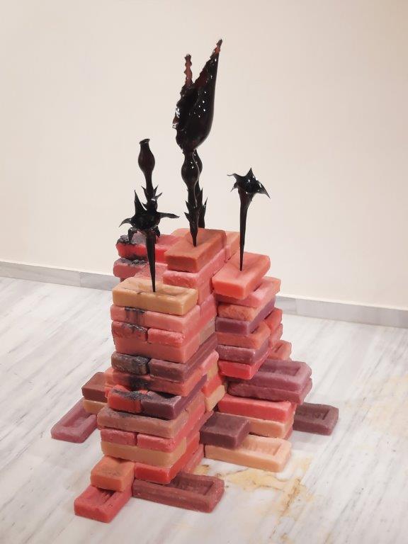 Onsdag – dags att resa vidare, men först ett besök på Moderna muséet (Museum of Contemporary Art of Crete). Jag vet aldrig vad som väntar och det är roligt. Denna gång var det ett gäng konstnärer som genom att använda saker och material som redan finns men manipulera dem för att uttrycka ”the present of our past”. De menar också att pandemin med lockdowns mm fått oss att gå mer inåt till tankar, drömmar och funderingar. Jag hängde inte riktigt med vad de ville ha sagt och det var inte många verk som grep mig, men som helhet fick jag en känsla av lekfullhet, kreativitet och fantasi.