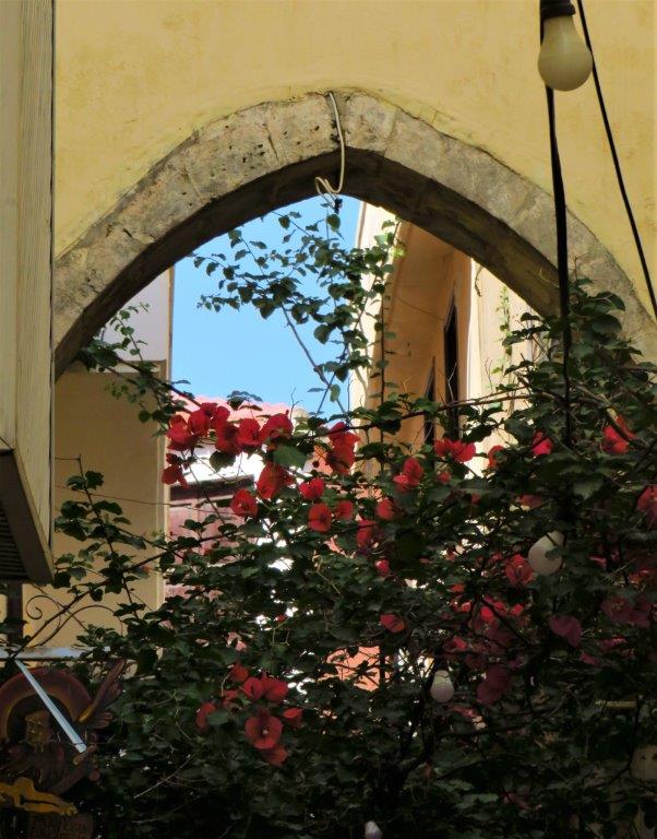Rethymno är den bäst bevarade renässanstaden på Kreta (kanske i Grekland – det vet jag inte). Troligen klarade den sig bra vid Slaget om Kreta då t ex Iraklio bombades sönder och samman. Venetiansk byggstil är så frekvent och vanlig att det stundtals känns som om man är i Italien – inte en otrevlig känsla! Det är valv och porticos och verandor och figurer och pelare…ja, en mängd detaljer och hus.