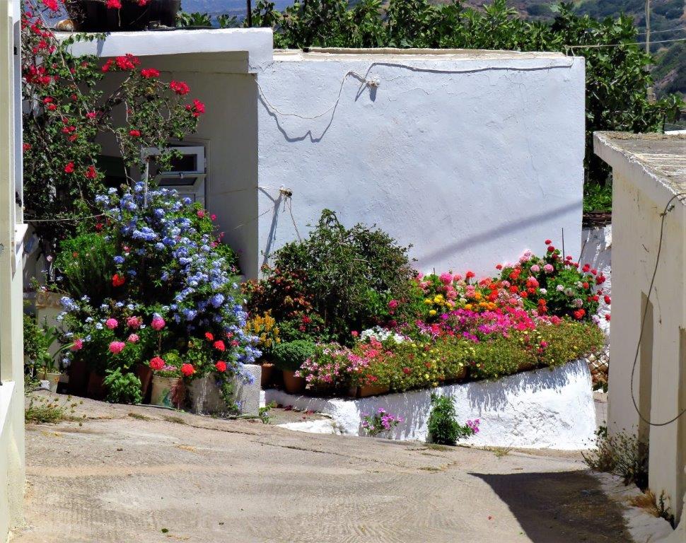Roussa Ekklisia strosade jag runt i och njöt av alla blommor. Det var blommor nästan överallt, de måste älska att det prunkar.