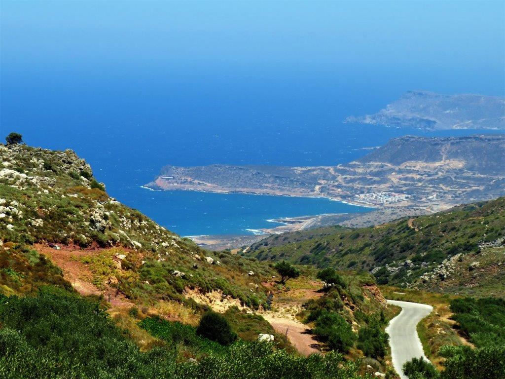 I Koutsouras svängde vi inåt land mot Stavrochori. Det är ”gamla” vägen till Sitia och den är väldigt vacker och fin. Här kan du njuta av det speciella hedlandskapet – frygana – som är typiskt runt Medelhavet. Få träd ju längre österut du kommer, men fullt med olika buskar, örter och gräs. Just nu blommar timjan vilket ger sluttningar och vägkanter härliga lila inslag i det gröna.