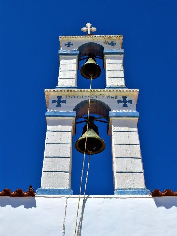 I en liten gränd växte en av de största bougainvilleor jag sett i form av ett fint och jämt träd. Jag undrade om bynamnet hade något att göra med ”röd kyrka” och hittade senare information på nätet att det finns olika teorier. En bygger på att byns, som är rik på vatten, gamla kyrka Agios Nikolaos ansågs byggd på en vattentäkt, en ”flytande” kyrka – dvs Roussa Ekklisia. Mer om byn här.