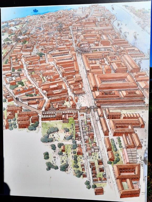 Snart kunde jag se vad som var det viktigaste: de stora magasinen och maktsymboler (stora tempel, ”villor”, forum) men också bad, teater, tvätteri och annat som måste finnas för att en stad ska fungera. Dock var magasinen de som dominerade och att olika yrkesgrupper hade sina ”hus” (”klubbhus”?). Fiskarna hade sitt, byggarna ett annat och sädeshandlarna (se foto) ett större.