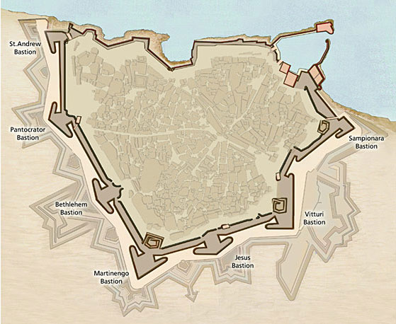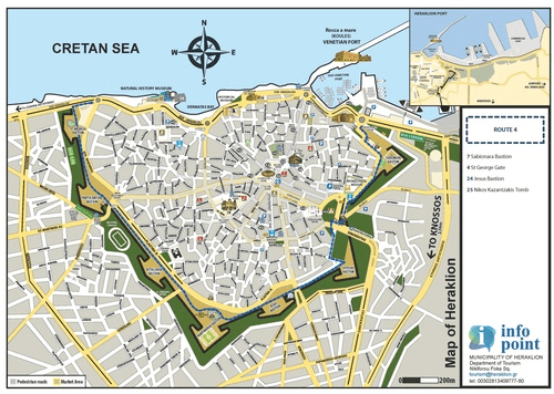 Murar runt Iraklio började byggas innan venetianarna kom. Bysans började, sedan araberna och därefter Bysans igen. Vissa rester av de bysantinska murarna finns nere vid hamnen.