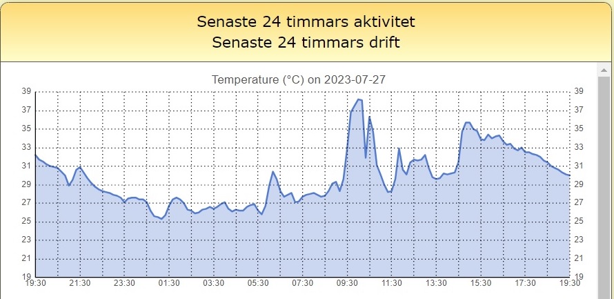 Nu är vi tillbaka till vanligt augustiväder, dvs temperatur runt 30 grader som då och då kan hoppa upp till 35 grader och däröver. Men en dag här och där klarar man!