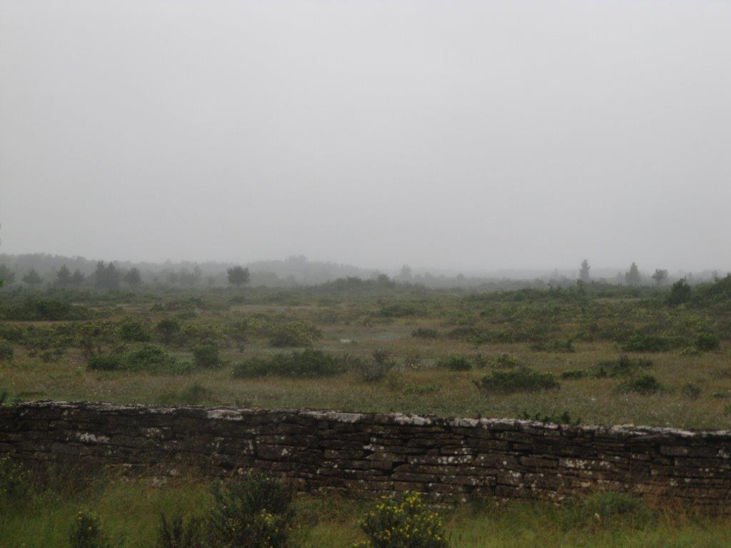 Det andra fotot är från juli 2011 då jag lånat systerdotterns lägenhet i Kalmar för att vandra på Öland. Det regnade varje dag, men uppehåll på kvällen så jag i alla fall kunde gå ut och äta. En dag började med ”bara” dimma så jag kastade mig över bron, hade tagit ut en runda men hann inte långt förrän det började droppa vilket övergick i…just det, regn. Bara att gå tillbaka och köra över bron igen!