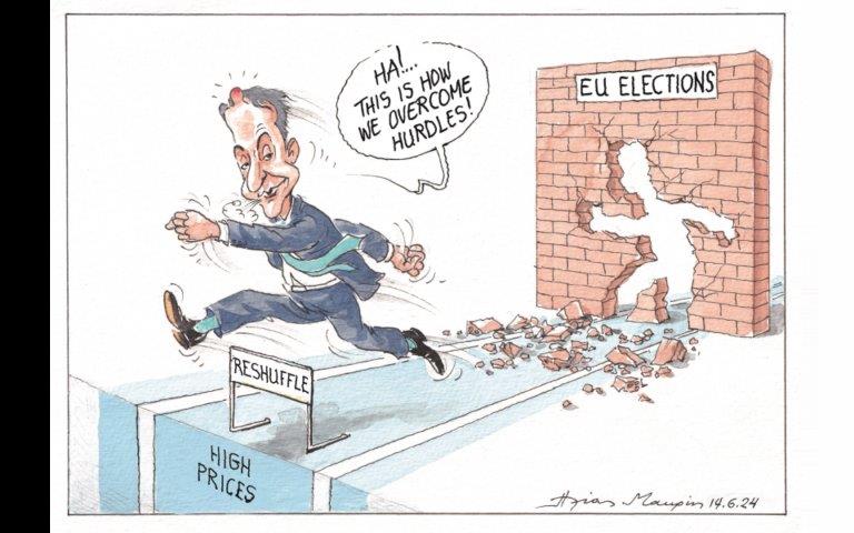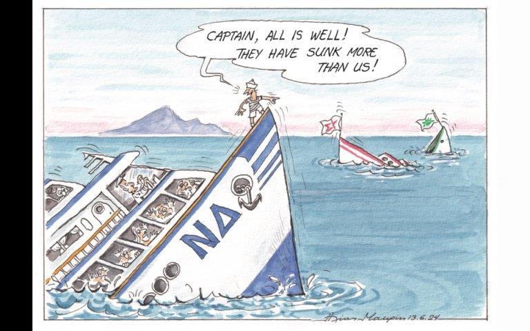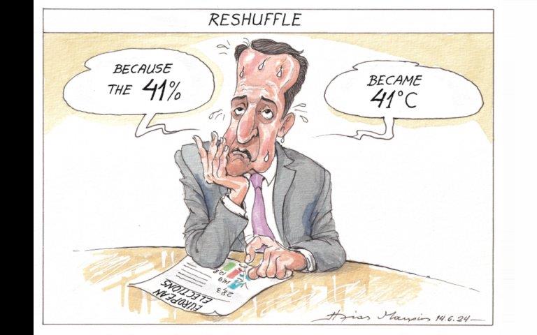 Det har ju varit EU-val vilket regeringspartiet Ny demokrati skulle vinna stort. Så blev det inte utan alla partier tappade och en anledning sägs vara det låga valdeltagandet. Tecknaren Ilias Makris visar valresultatet tydligt och bra (från ekathimerini.com):