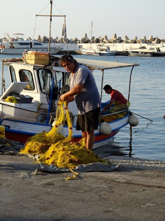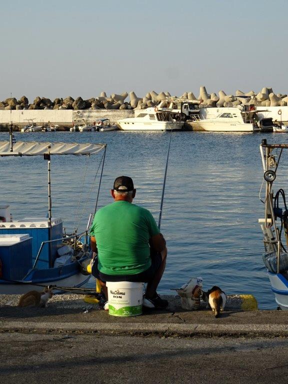 Nere i fiskehamnen är det aktivitet, även av det mer stilla väntande slaget.
