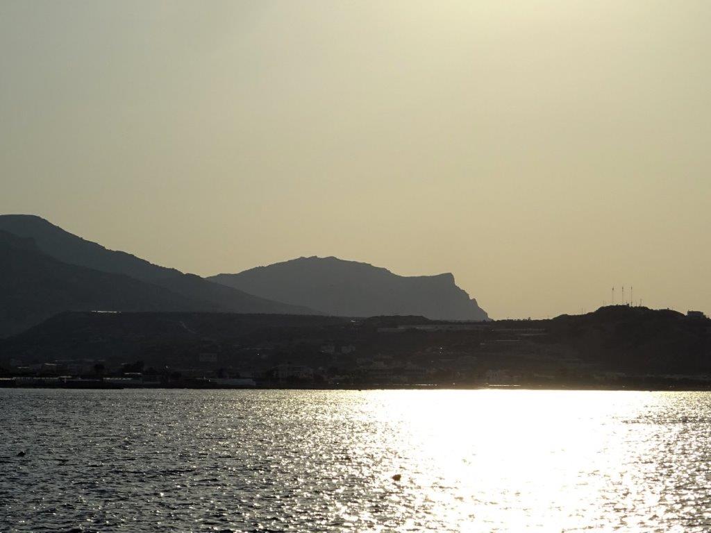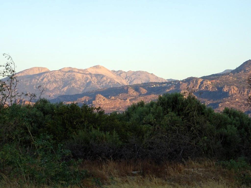Solen har masat sig över Thripti-bergen i öster och färgar nu Dikti-bergen i väster. Det ser nästan ut som om de glöder!