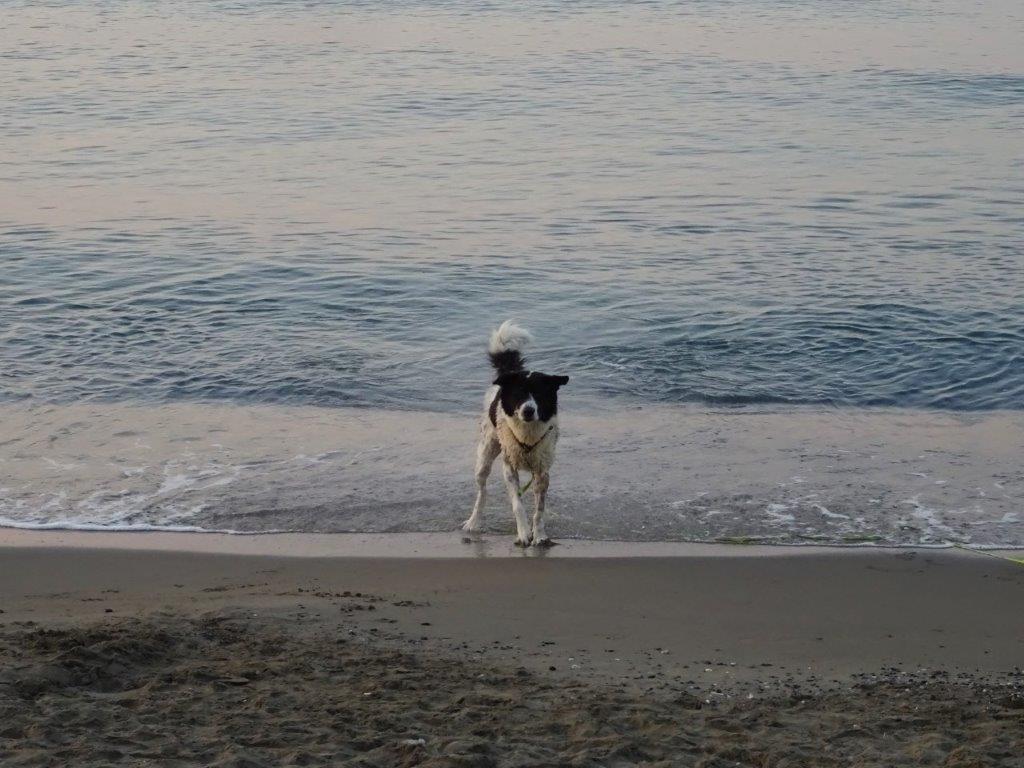 Några badare är redan i vattnet, den här hunden skakade vällustigt på sig efter sitt bad.