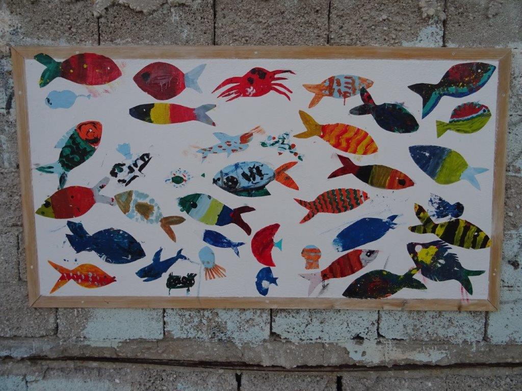 Dagis och skolor ligger övergivna, men bjuder på sina dekorationer.