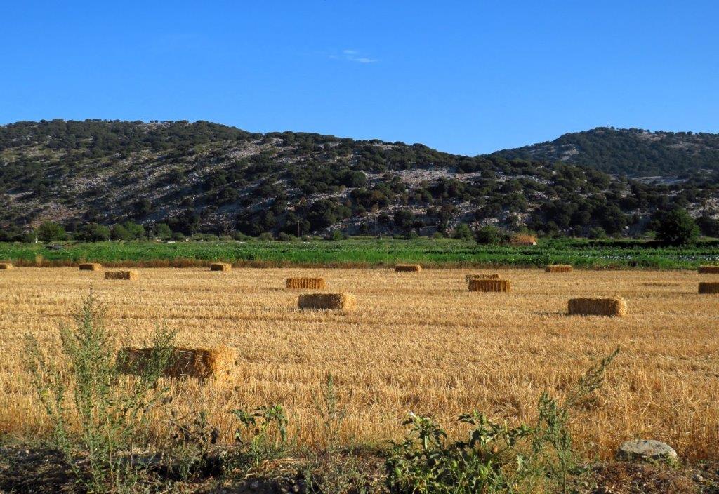 Iväg igen och nu kändes solen i ryggen, alltså kortade jag ner vandringen. Potatis skördades, kål bevattnades men bara två-tre åkrar. Platån har stora vattenbekymmer precis som resten av Kreta. Jag anser att allt icke livgivande vatten borde stängas av som t ex strandduschar och biltvättar.