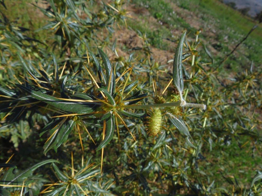 Jag gjorde dock den här nya bekantskapen: Tistelgullfrö (Xanthium spinosum). En rolig och originell planta! Luras inte av att taggarna ser vissna och kraftlösa ut – det var de inte.