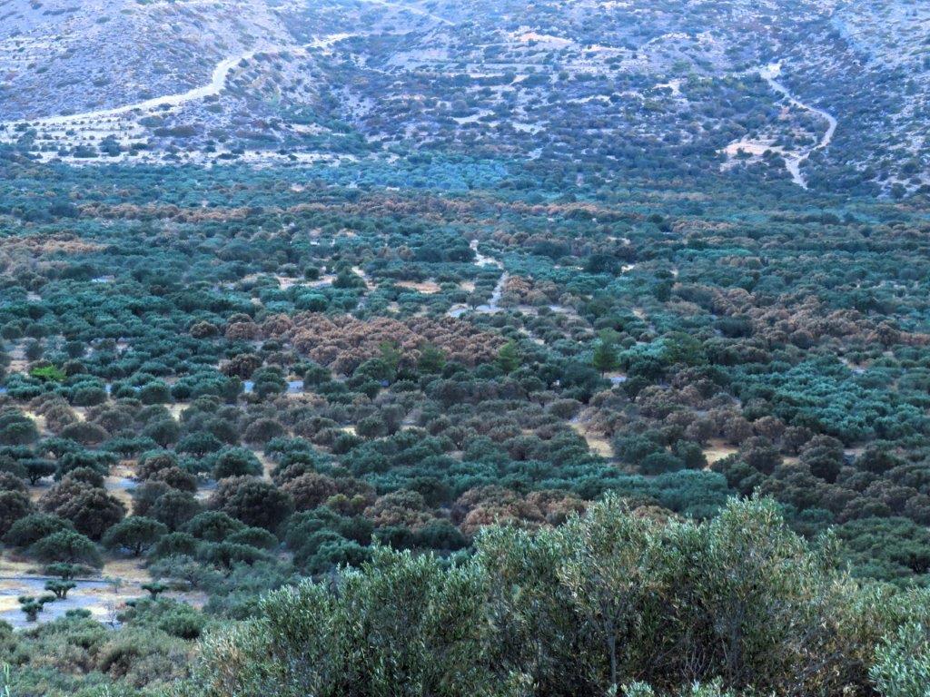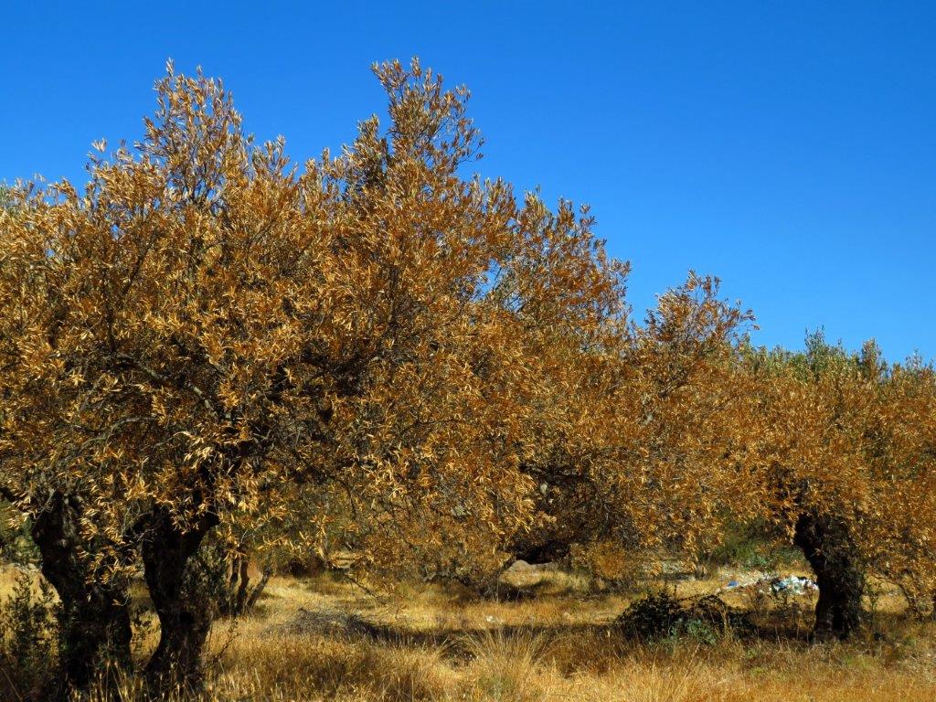 Alla de bruna ”fläckarna” är vissna olivlundar. Och träden är verkligen vissna: