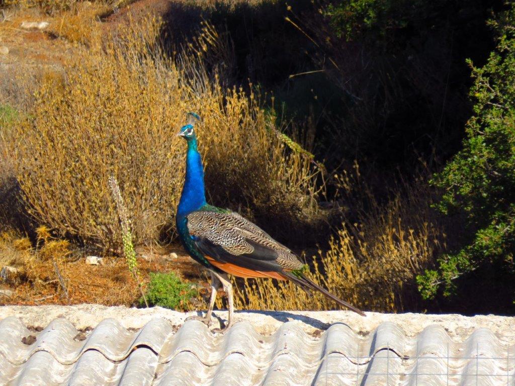 Jag tycker om att vandra på bra underlag så jag kan se mig omkring, njuta av landskap och natur. Att gå med näsan i marken för att se var jag sätter fötterna är inte min grej. Man kan få syn på allt möjligt, t ex en vacker påfågel som svassade omkring på ett skjultak och vilande gäss (eller kanske stora ankor):