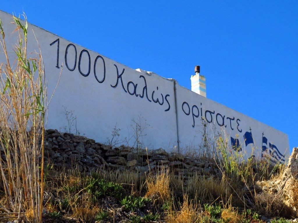 Så här välkomnad blir man i liten by! (det står ”1000 Välkommen”)