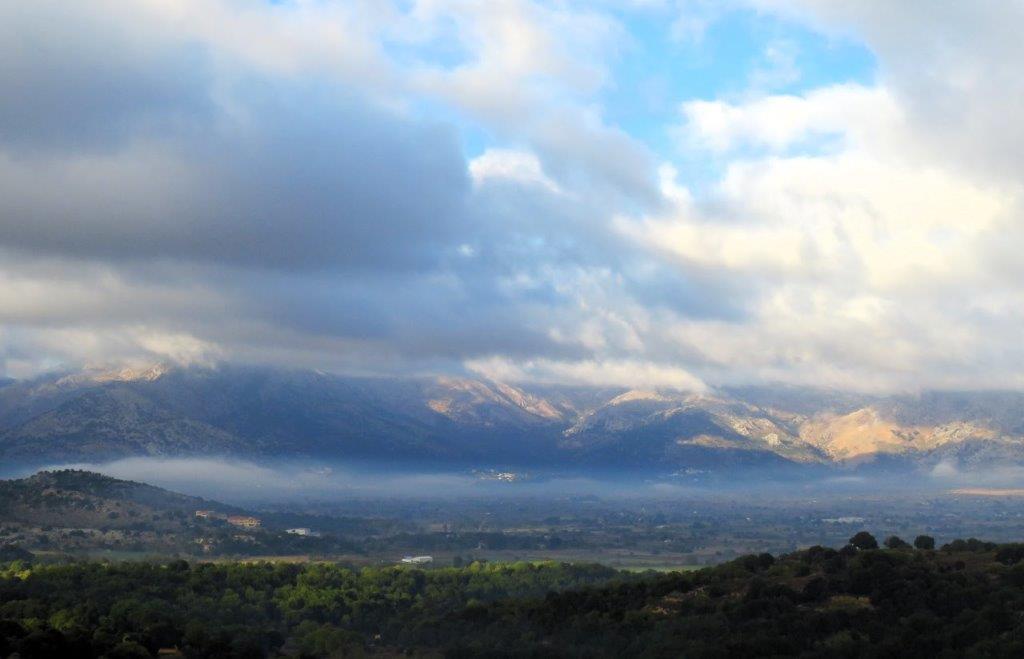Jag kom upp till Lasithi-platån strax efter kl 8 och den välkomnade mig på det mest vackra och magiska sätt med slöjor som löstes upp när de landade som dagg. Över platån låg ett molntäcke som bjöd på dramatik tillsammans med bergen där solen lekte tittut. Behöver jag säga att jag tappade andan?