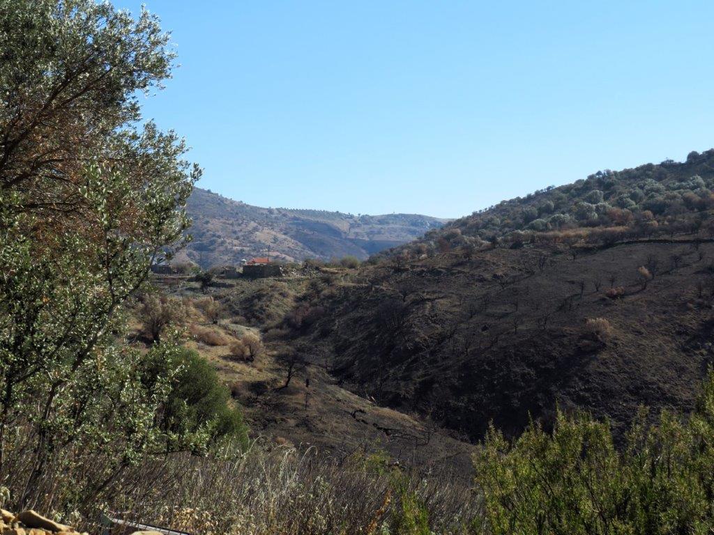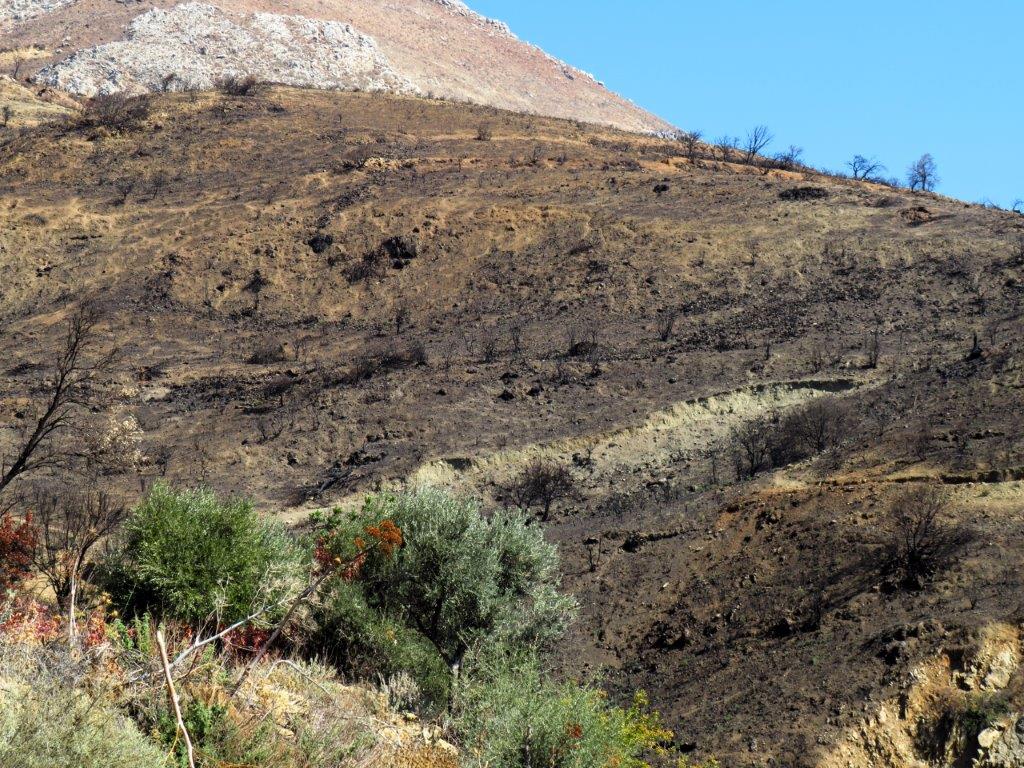 Det blir väldigt tydligt när man står där, omgiven av svarta sluttningar fulla med aska. Titta på fotona nedan och föreställ dig hur de sluttningarna såg ut före sommarens storbrand! Träd, buskar, örtväxter, bikupor, betande får och getter, olivlundar….