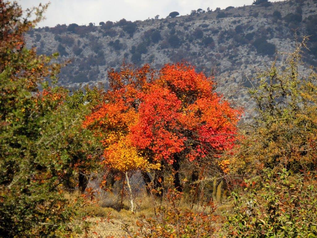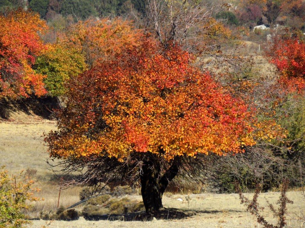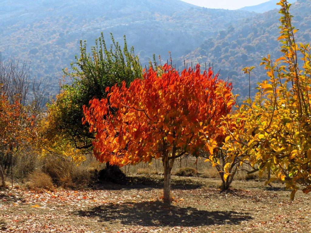 Katharo-platån ger mig fruktträdsblom på våren och paletten på hösten.