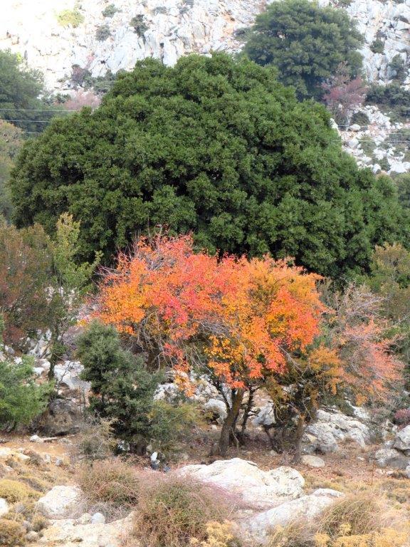 Det finns tre saker jag saknar här i naturen. Det är rapsfält vilka getoxalis får ersätta, men de doftar tyvärr inte. Det är fruktträd i blom vilket olivträdens blommor inte kan ersätta då de är så små och oansenliga. Och det är höstpaletten då naturen bjuder på en sprakande, underbar föreställning. Å andra sidan sett tycker jag väldigt mycket om vintergrön natur. Man kan väl säga att man kan inte få allt.