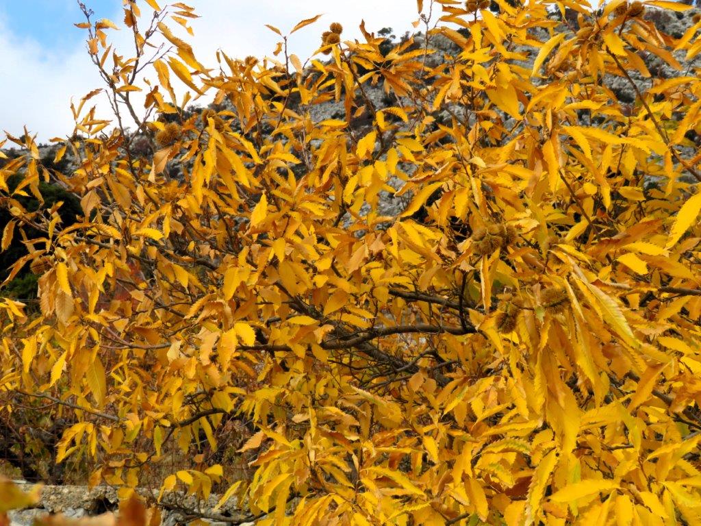 Det var med fjärilar i magen som jag körde upp till Katharo i tisdags. Skulle jag få min efterlängtade höstpalett? Detta år som varit nederbördsfattigt och med en het sommar? I lite mer än en vecka har vi haft hård vind (t o m tromber/små tornados som förstört växthus!) – finns det över huvud taget några löv kvar på träd och buskar?