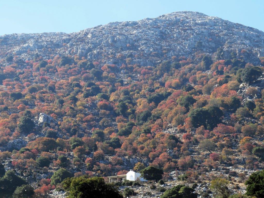 Katharo-platån ger mig fruktträdsblom på våren och paletten på hösten.