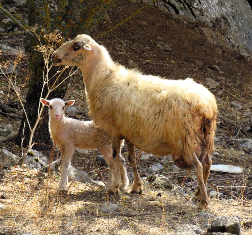 Gick förbi en hage där varje tacka hade nya lamm. De var tydligen bara några dagar gamla så de hade vandrat iväg på egen hand och flera små lamm bräkte efter sina mödrar. Den här krabaten lät väldigt eländig, nästan förtvivlad. Jag har lagt märke till att tackor gärna ställer sig mellan mig och sitt lilla lamm, i alla fall så länge lammet är relativt nyfött. Det är så tydligt att det inte kan missuppfattas: ”Kom inte hit! Rör inte mitt lamm för då…”Men ibland tittar det nyfikna lammet fram så jag får ett foto på båda i alla fall.